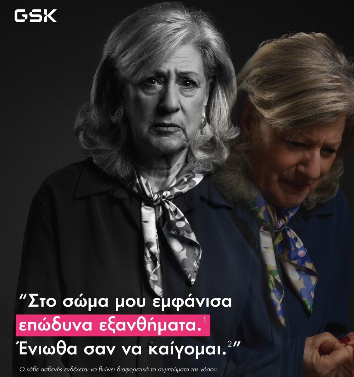 Η κ. Ειρήνη Μιτσίκη, Country Medical Director της GSK Ελλάδος, ανέφερε σχετικά: «Στη GSK Ελλάδος αναγνωρίζουμε τον καταλυτικό ρόλο που διαδραματίζει η ενημέρωση και ευαισθητοποίηση του κοινού στην επίπτωση και επίδραση λοιμωδών νοσημάτων. Στο πλαίσιο αυτό, είναι ιδιαίτερα σημαντικό να συνεχίσουμε τις προσπάθειές μας προκειμένου να αυξήσουμε την ενημέρωση σχετικά με τον κίνδυνο εμφάνισης έρπητα ζωστήρα σε ενήλικες άνω των 50 ετών. Είμαστε ιδιαίτερα υπερήφανοι που συμβάλλουμε, ως GSK Ελλάδος, στην διεθνή προσπάθεια για την περαιτέρω ενίσχυση του ήδη βαρυσήμαντου ρόλου των ιατρών και των επαγγελματιών υγείας στην ενημέρωση, ευαισθητοποίηση και υποστήριξη του ενήλικου πληθυσμού στο να κατανοήσει τους κινδύνους και τις επιπλοκές που σχετίζονται με την λοίμωξη από έρπητα ζωστήρα».
