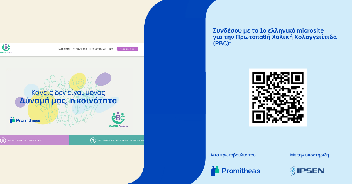 Ο Promitheas, μία οργάνωση προάσπισης της δημόσιας υγείας που σχεδιάζει και υλοποιεί παρεμβάσεις πρόληψης, έγκαιρης διάγνωσης και ενδυνάμωσης της πρόσβασης σε φροντίδα υγείας, με έμφαση στους ευάλωτους πληθυσμούς, ανακοινώνει το λανσάρισμα του νέου microsite MyPBCVoice, μιας ψηφιακής πλατφόρμας αφιερωμένης στην Πρωτοπαθή Χολική Χολαγγειίτιδα, με στόχο την αξιόπιστη ενημέρωση, την ενδυνάμωση και τη διασύνδεση των ατόμων που ζουν με τη νόσο στην Ελλάδα.