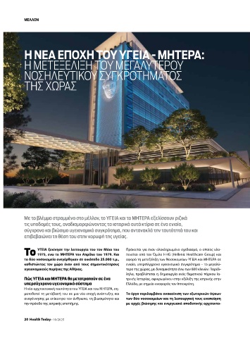 τα δύο νοσοκομεία ανεγέρθηκαν σε οικόπεδο 25.000 τ.μ., αφορά τη μετεξέλιξη των Νοσοκομείων ΥΓΕΙΑ και ΜΗΤΕΡΑ σε